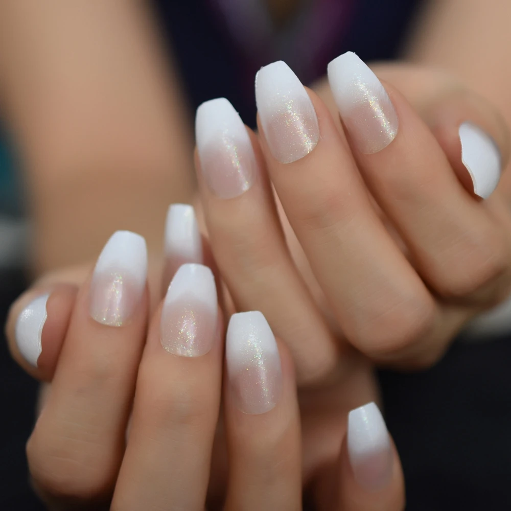 White Transparent Ombre Coffin Nails Holographic Glitter Decorative False Nail Art Tips Medium Size Pre Designed 24pcs False Nails Aliexpress